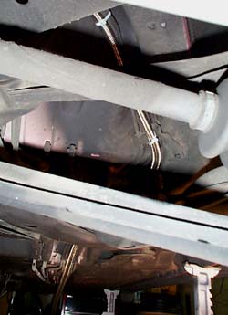 Here you can see some of the routing under the car; up and over the suspension similar to the stock routing. The -8 hose fit quite well in the modified guard.